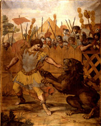 | Costantino il Grande uccide il Leone. Pietro da Cortona si ispir� allo stemma avito di Re Poto (Puoti) per rappresentare l'Imperatore Costantino il Grande. | ||||||||||||||||||||||||||||||||||||||||