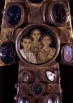 | Croce di Re Desiderio, Museo Civico dell'et� Cristiana di Brescia. Reca il ritratto di Galla Placidia con i figli Valentiniano e Onoria del V Secolo. | ||||||||||||||||||||||||||||||||||||||||