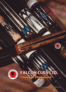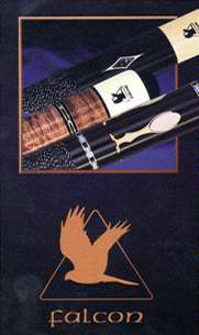 Every Falcon Cue is made in Canada from the best Canadian grown Birdseye and hard rock maple. We use a variety of fabulous exotic woods such as ebony, cocobolo, bocote, snake wood and lace wood, all of which give our cues a distinct and polished look. We decorate our cues with precious bone ivory, mother of pearl and abalone. These unique features are guaranteed to catch any player's attention. Falcon uses a 14-5/16" thread bolt to insure the quality connection of the shaft and butt. The professional paralleled 13"-14" shaft taper makes it a high quality playing cue with a solid feel. Our cues also feature stainless steel joints, triangle tips, aegis ferrules and pressed Irish Linen. Pro players Karen Corr, Nick Varner, John Horsfall and Jeff White are using Falcon Cues to win matches.