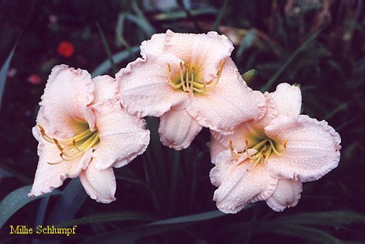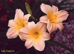 Daylilies have come a long way since the early hybrids of Stout. No longer are we limited to the yellows, golds and oranges of yesterday's cultivars. Today's hybrids are in almost every colour except true Blue, and come in numerous petal forms including frilled, ruffled and pie crust. Colour combinations with eyed, haloed, watermarked, and edged petals makes the combinations of traits and colours infinite. It is for these reasons that the Daylily has become as popular as it is; coupled with the fact that except for true lilies, there is very little else which adds colour to the garden late in the summer the way Daylilies do.