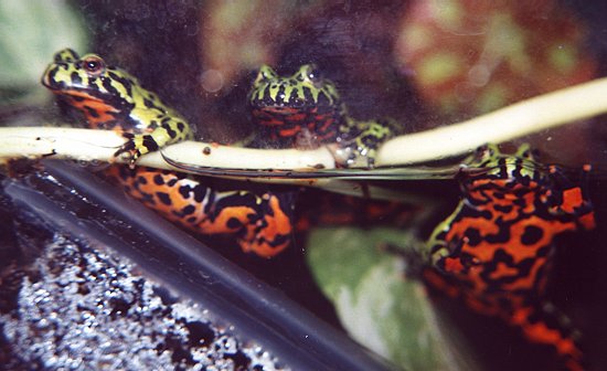 We have been keeping frogs for well over six years now, it all started with one Fire Bellied Toad (Bombina orientalis). Olga thought that it would look cool in a terrarium in our orchid room, well it did, and before we knew it we had five of them and a small colony of Green Tree Frogs (Hyla cineraria) also. Our collection has grown since but we both still love our original group of Fire Bellied Toads.