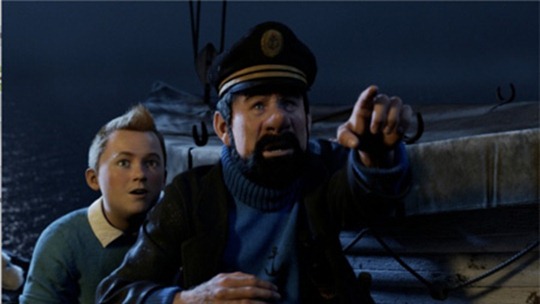 Al volver a su departamento, Tintin lo encuentra en desorden aunque el barco desapareció. Va a buscarlo a casa de Rackham donde encuentra otra réplica. Al volver el extraño que le ofrecía comprar el barco es asesinado a la puerta no sin antes dejar una pista en una hoja de periódico. Los detectives Hernández y Fernández --Thompson Twins en la versión original; a ellos se debe el nombre de ese grupo que fue muy popular en los 80-- aunque son unos burócratas ineptos, se encargan de cubrir el caso. En eso Tintin se secuestrado y llevado a un barco donde Rackham es el capitán. Ha logrado que la tripulación se amotine y tenga prisionero a Haddock, el capitán (voz de Andy Serkis). Gracias a Snowy, la inteligentísima mascota de Tintin, éste y el capitán se conocen. Pero Haddock es un borrachín que proviene de una brillante estirpe de aristócratas y navegantes y quien hace rato perdió toda noción del honor y la responsabilidad. Sin embargo es indispensable que Haddock recuerde lo que le dijo su abuelo para así descubrir lo que trama Rackham.