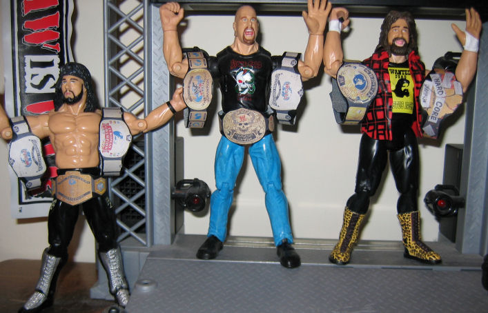 | X-Pac: 1996-2002 WWF Light Heavyweight Title (Waist), 1996-2000 WWF European Title (Left Shoulder), 1996-2003 WWF Tag Team Title (Right Shoulder) Steve Austin: 1997-1999 WWF Smoking Skull World Title (Waist), 1996-2003 WWF Tag Team Title (Left Shoulder), WWE Intercontinental Title (Right Shoulder) Cactus Jack: 1997-2002 WWF World Title (Right Shoulder), 1997-2003 WWF Hardcore Title (Left Shoulder) |