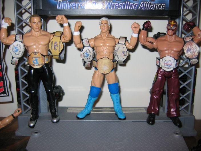 | Shawn Michaels: 1995-2001 Tag team Title (Right Shoulder), WCW International Title (Waist), 1992-1999 WCW Television Title (Left Shoulder) Ric Flair: 1987-2001 WCW World Title (Waist), 1989-2001 WCW United States Title (Left Shoulder), 1995-2001 Tag Team Title (Right Shoulder) Rey Mysterio: 1995-2001 WCW Cruiserweight Title (Waist), 1999-2000 WCW Hardcore Title (Left Shoulder) |