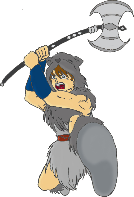 AHHH!!!! Bartz has gone BERSERK! And he's got a big, huge, DEADLY axe in his hands!!! That's right, he is pertrayed as a Berserker in this piece of art made by Kim. |  |