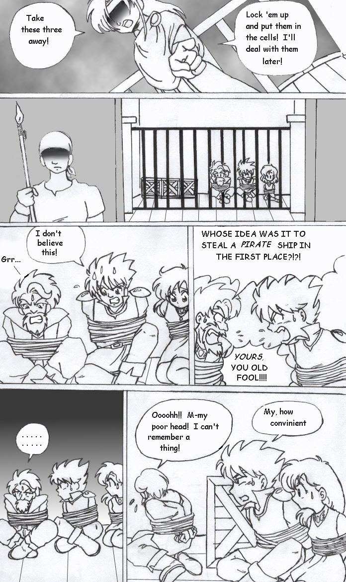 This is a neat comic from when Faris throws Bartz, Galuf, and Reina in jail near the beginning of the game. You'll recognize this scene even if you've played the game for an hour. Made by Kim. |  |
