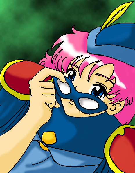 | Reina is shown here as a Blue Mage with her mask lowered. Made by Kim. |