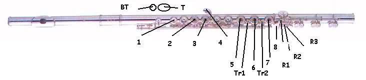 | Octave 1 B* T,1,2,3,5,6,7,8,R1,R2,R3 C T,1,2,3,5,6,7,8,R2,R3 C#/Db T,1,2,3,5,6,7,8,R1 D T,1,2,3,5,6,7 D#/Eb T,1,2,3,5,6,7,8 E T,1,2,3,5,6,8 F T,1,2,3,5,8 F#/Gb T,1,2,3,7,8 -or- T,1,2,3,6,8 G T,1,2,3,8 G#/Ab T,1,2,3,4,8 A T,1,2,8 A#/Bb T,1,5,8 -or- BT,1,8 -or- T,1,8 and Bb lever Octave 2 B T,1,8 C 1,8 C#/Db 8 D T,2,3,5,6,7 D#/Eb T,2,3,5,6,7,8 E T,1,2,3,5,6,8 F T,1,2,3,5,8 F#/Gb T,1,2,3,7,8 -or- T,1,2,3,6,8 G T,1,2,3,8 G#/Ab T,1,2,3,4,8 A T,1,2,8 A#/Bb T,1,5,8 -or- BT,1,8 -or- T,1,8 and Bb lever Octave 3 B T,1,8 C 1,8 C#/Db 8 D T,2,3,8 D#/Eb T,1,2,3,4,5,6,7,8 E T,1,2,5,6,8 F T,1,3,5,8 F#/Gb T,1,3,7,8 G 1,2,3,8 G#/Ab 2,3,4,8 A T,2,5,8 A#/Bb T,5,Tr1 Octave 4 B T,1,3,Tr2 C 1,2,3,4,5, (#) C#/Db 1,4,5,R2,R3 -or- (# replaces R2 and R3) D T,3,5,6,R2,R3 D#/Eb T,1,2,3,4,5,7,8,Tr1 E 1,2,4,7,8,Tr2 F 2,6,Tr2 F#/Gb T,2,3,4,6, |