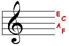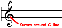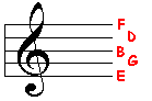 | Note Names and Clefs Treble Clef- Almost all the time, flutists will only have to worry about one clef- treble cleff. The clef is a curly q that wraps around the second line from the botton and designates all notes on that line as G. (For this reason, the treble cleff is also called the G clef). The notes progress up and down on the rest of the lines and spaces. The notes in the spaces of the treble clef spell "FACE" and the line notes are "EGBDF." There are various memory tricks to remember EGBDF. The most common is Every Good Boy Deserves Fudge. The problem with these tricks is that you can't come to a D in the music and then go through the whole trick in your head before playing- there just isn't time. It is best to memorize the notes and their positions. I did this by making flashcards. |