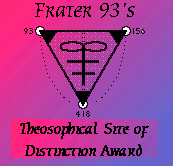 This Award is given to those pages which exhibit several characteristics: They must be related to some form of spirituality There must be a consistency of good graphical design They must offer useful content for those seeking enlightenment NO commercial pages are eligible Pages consisting solely of links are very unlikely to be eligible They should be easily navigable HTML coding should be concise (I will view the source code) This will be awarded to any site which meets the criteria above, the most important being the amount of original content present. If I come across your site, and feel it deserves this award, I will e-mail you. However, if you want to specifically apply for the award, fill in the form below. Signing the guestbook won't hurt either. Enter the following details, and submit the form below. Name E-Mail Page Title URL of Page How did you get here? Surfed on In Award Link AvatarSearch Search Engine God sent me I divined the URL Brief description of Site and why it deserves the award: