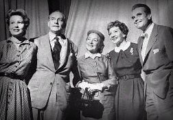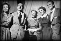 | (l-r) Nancy Olson, Fredric March, Helen Hayes, Claudette Colbert, and Kent Smith in "The Royal Family" CBS 1954 |