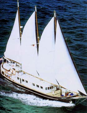 ![]() cruise the Galapagos in luxurious elegance Built in Norway, Alta is a ketch-rigged Motor Sailer, a very stylish yacht that has the special charm of a sailing ship. She is one of the finest luxury yachts to sail in these equatorial waters, and seems more to dance a cross the water like a damsel in a white dress. Complete with all amenities, she is fully air-conditioned, has autopilot capabilities as well as satellite telefax. A classic among yachts, this masted schooner combines authentic shipboard elegance with any ocean passage.