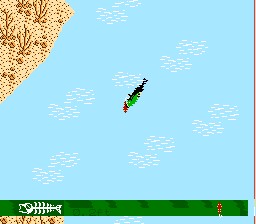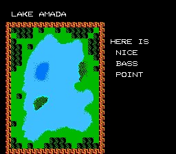 | | Black Bass | Graphics: 2 The graphics are pretty pathetic, even to NES standards. Other than seeing the shadow of the fish and a little green head when it bites your hook, all the game consists of is water and cheap looking scenery. I�m pretty sure this game would have been almost as cool if it was text based�that is just my own personal speculation though. |