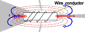 | When a length of wire is wound around a good magnetic conductor such as a piece of soft iron and current is passed through the wire, the soft iron becomes a magnet so long as the electric current is flowing through the winding wire. Fig 2 |