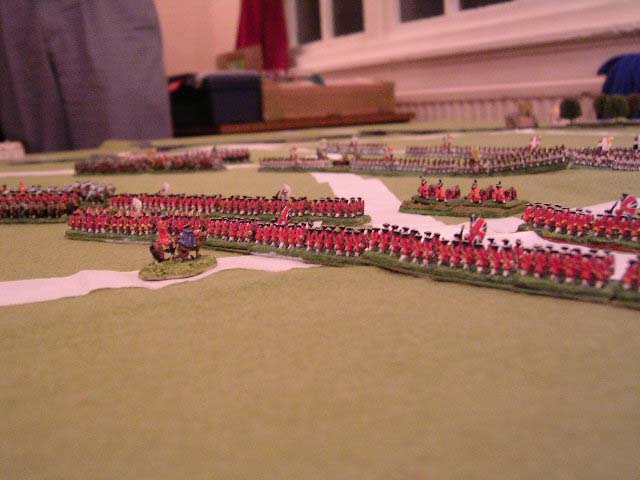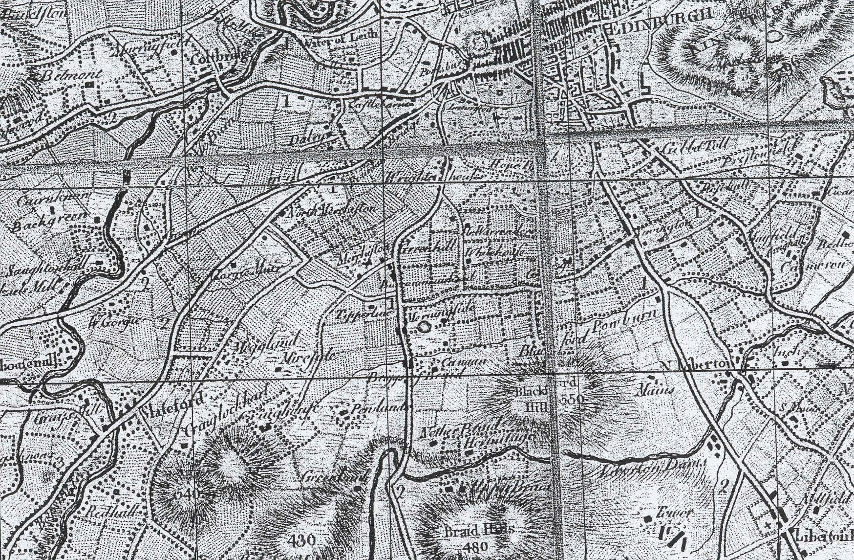 Club member, Peter Clarke, stumbled across an 18th century military map of Edinburgh and its environs. (Queens Ferry to Prestonpans). As a committed 18th century wargamer, he immediately spotted the potential for a small campaign using a period map, and lo, a French attempt to provoke a Scottish rebellion was launched. You can see a sample of the full campaign map here, the shown area represents the actual battle tabletop, whilst the armies began approximately 3 days march away, two and a half of which were on the full map area
