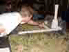 Another trip to B&Q for whitish paint, varnish (for the stream) and a couple of brushes and the second week of the summer holidays was no longer going to comprise boring afternoons loooking out of the dining room window at the grass growing and the lawnmower rusting in the bottom corner of the garden. Ah, there's nothing quite like the aroma of burning polystyrene foam and a red-hot screwdriver! (I hope that's not rude).