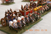Slightly to my surprise, DBA has stood the test of well over two dozen games using a limited set of armies, and I do not feel very inclined to move up to DBM. Yes DBA is (even more) abstract than DBM, but in most cases I can happily argue 'historical' explanations for apparently unlikely results. In particular, games with more than 12 bases take that much longer to reach a conclusion, so that the differences between two sides' command PIP rolls are likely to even out in the long run. As for choosing to limit command to 1D6, even when doubling the number of bases: this discourages (while not forbidding) over-complex battle plans, and as described above, tends to even out battles between armies of different sizes.