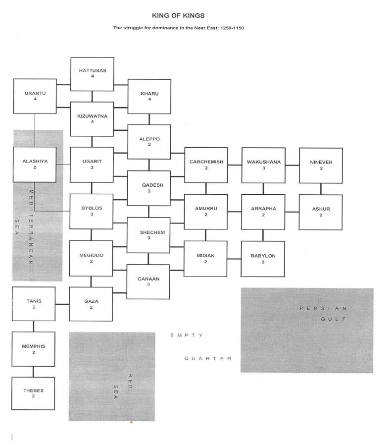 This campaign represents the struggle between the Egyptian, Assyrian and Hittite Empires for domination of the Near East. Campaign moves will be regulated by card play, whilst battles will be moderated using DBA 1.1 (although in the examples, army lists are taken from the original version).