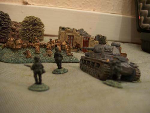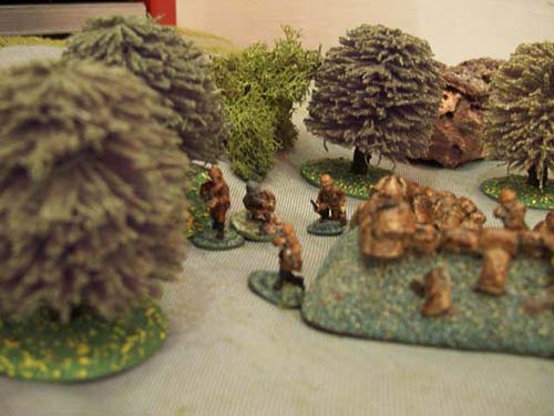 60mm mortars or equivalent may be used on table. Note they have a minimum range. They may fire directly or indirectly; if indirect then an observer is required. Can fire HE or smoke. The firer specifies a target location then rolls for scatter. This roll is modified depending upon range, indirect/direct fire and the number of previous shots on target.