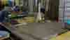 All you need is an edge or lip for the table and a ground sheet. The edge, in this case, is a folding frame, hinged to open out into a 5�x7�6� rectangle joined by a hasp at one corner. At the club three 2�x8� tables are erected and shoved together creating a 6�x8� surface. The frame is put on top and a 6�x8� plastic tarpaulin is put on top of that. Enter the sand, contained in two B+Q plastic see through containers about 18� wide by 2� long by 4 or 5� deep with clip-on lids and little roller wheels underneath. Each container holds about 30-40lbs of sand. This gives a coverage of about an inch over your whole 7�6�x5� table.