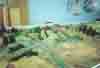 I learned a great deal from this experience. 1) Sand is heavy. 2) Even heavier carried up ladders a bag at a time. 3) When it dries out it can find it�s own level leaving you with a curious inverted cone shaped hole in your world and a new hill under your table. A few more years and another move, this time to an old out building and the perfect place to have a ground level sand table. No more ladders for me! This time I did my homework properly and with the help of a couple of mates from the Phoenix Club and my son Chris we built the present version. It is 6ft wide, the most comfortable distance to reach in at each side, and is 24ft long, and the greatest possible length for the room. It carries 2 tons of builder�s sand.
