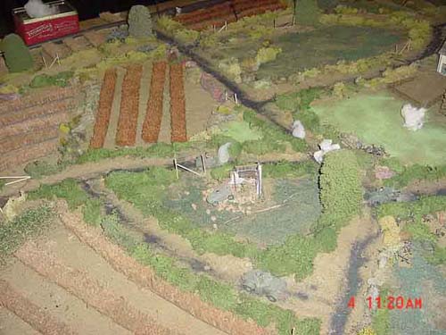 I have been studying the problem for a number of years. I started wargaming very young and it stuck with me. Ever since 1973 when my dear understanding mum let me take my 54mm Airfix WW2 army into the back garden and go nuts, I�ve known that there is no substitute for real terrain. Mum was going to have grass laid, but before this was to happen, this patch of clay heavy earth and the garden hose were mine!