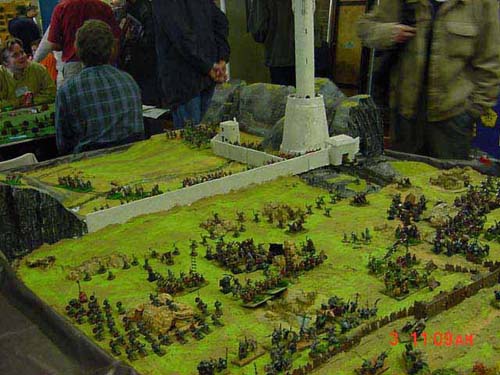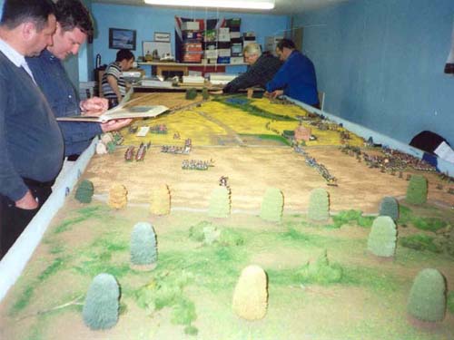 The years went by. My Uncle Robert bought me a book by Donald Featherstone called �Battles with Model Soldiers�. It crystallised my half-formed thoughts on wargaming and, along with the suggestion, showed a black and white photograph of some figures in action on a sand table. I moved to Scotland with my wife to her hometown. It was a substantial detached building with a huge loft space. Being 22 years old, married and therefore skint I turned to my mate Mike, then serving in the Royal Marines, he offered me substantial funds to get my project under way. Where he was going on exercise all winter he couldn�t spend his �hard earned� anyway. The result was a 16�x10� monster of a sand table in the loft. It needed two holes in the middle to get access to the entire playing surface.