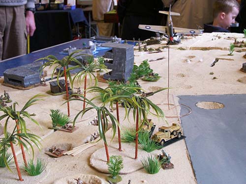 Also attrackting a lot of interest, this time in the back hall, was the Prestwick Wargaming club's Tarawa game, featuring molded foam terain features which the organisers assured was going to be used for a desert game the following weekend.