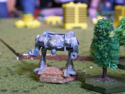 The South East Scotland club also put on a multi-player skirmish, aimed at the younger gamers, using the popular 'battletech' rules. Giant robots the size of sky-scrapers being the main equipment involved.