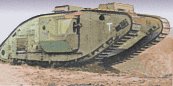 The Mk V was further modified by the addition of a six foot body section to increase the length of the vehicle. This was a modification intended to improve the trench crossing capabilities of the tank, as well as increase stowage capacity. The new vehicle was designated Mk V*, and this trend was confirmed by production of a further modified version, the Mk V**. The Mk V**, unlike the Mk V* never saw action, but was used experimentally after the war. The only surviving example is on display at the Tank Museum, Bovington. It differs from the MkV* in external details, but, more significantly, by having the engine situated further back towards the centre of the vehicle, thus improving the nose-heaviness of the Mk V*. |