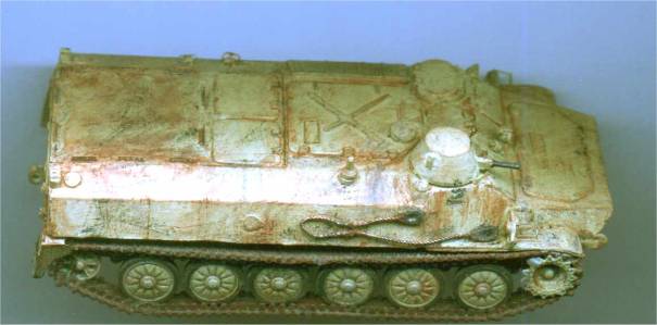 I enjoyed building this model. Rumour has it that some of these Ace models have poorly fitting parts and require lots of filler. In my experience, so far this has not been true, and to date I have built the BMP 1A1 Öst, the 2S1 Gvozdika, and now this MT-LB. Almost no filler was necessary and the most difficult aspect turned out to be assembling some of the single link track sections. There are a number of etched brass detail parts that are excellent enhancements to this model. My vehicle is finished in Gulf War Iraqi colours – the image above looks paler than the model actually is, although the original vehicle I used for colour reference was actually very faded and very rusty. There are some images of this vehicle to follow. They were taken at Bovington a few years back.
