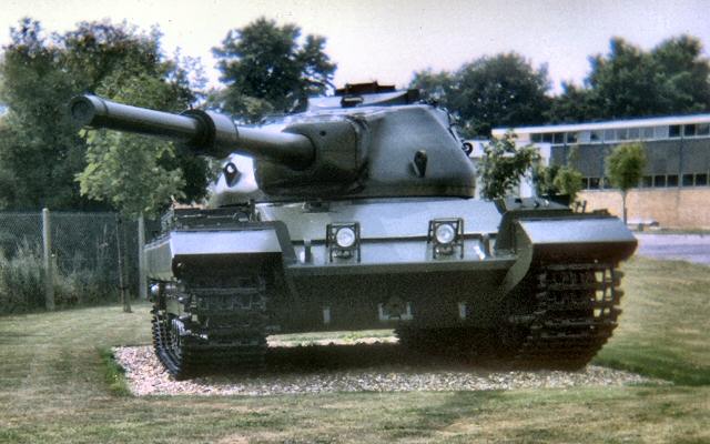 Conqueror was a Cold War giant and at 65 tons was the heaviest tank to see British service. It was designed to counter the perceived threat of Soviet heavy armour, such as the IS-3. The main armament was a 120 mm L1 with 35 rounds. The charge was separate to the projectile, but unfortunately was brass cased, thus requiring more space than the later bagged charges. The power plant was a Rolls Royce M120 fuel injected engine giving a top speed of around 21 mph. A crew of 4 was carried.