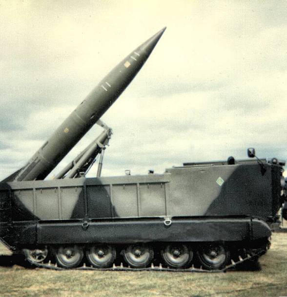 The M752 Lance Self Propelled Missile Launcher (SPL) is based upon the US M113 personnel carrier and has the same suspension and power train. Lance came into British service in 1976, equipping the 50th Missile Regiment, Royal Artillery and replacing Honest John. Lance was finally withdrawn from service in 1992. The support Loader Transporter (LT), M688, is of similar design and carries two missiles with dismounted fins. This one is in US service: