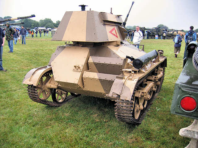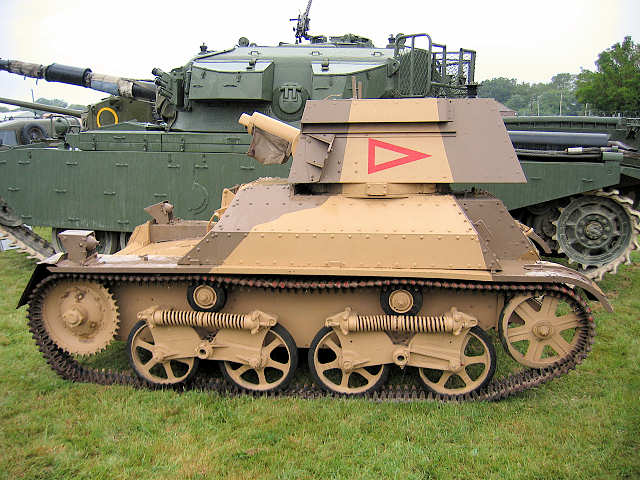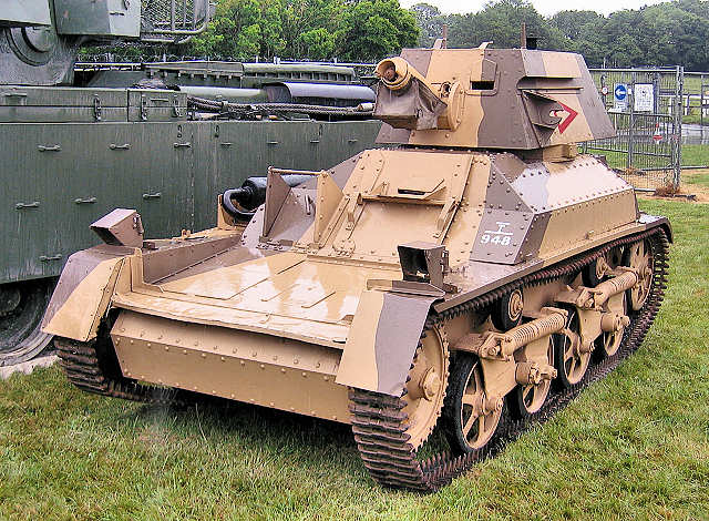 | Light Tank Mk II | No 1 Mk I turret with no air louvres on turret side and a sliding roof hatch. 16 built, 12 by Vickers-Armstrong, 4 by Royal Ordnance Factory. |