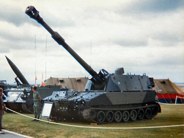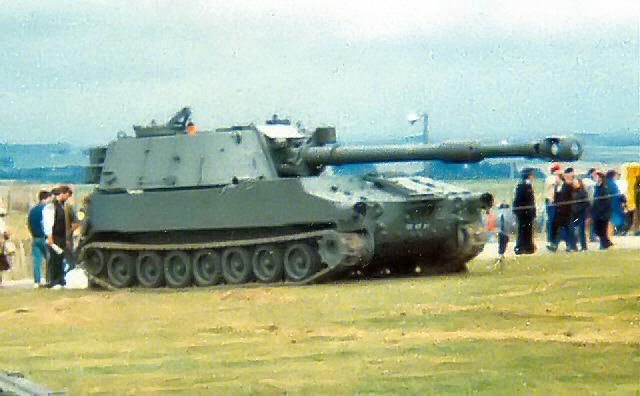The US short-barelled M109 Self propelled howitzer entered British service in 1965 and was subsequently up-gunned to the long barelled version, M109A1 and later M109A2. The pictures on this page were taken at Larkhill in 1984. M109 has been replaced by AS90 and the vehicles were all sold to the Austrian Army.