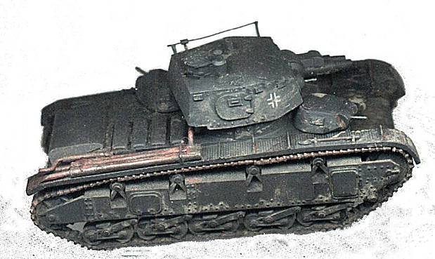This is an all-resin kit from Modelkrak of Poland and represents the NbFz PzKw VI with Krupp turret. Once again, my weakness for multi-turreted vehicles from the 1930s came to the fore and I just couldn't resist buying this model. Construction was straightforward, with the possible exception of the tracks. These were resin castings in short lengths, and I broke up some of these into individual links to facilitate fitting aound the idlers and sprockets.