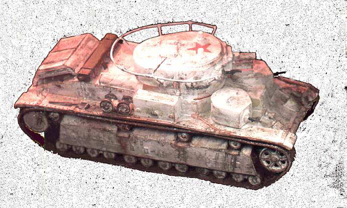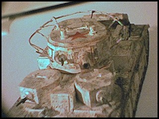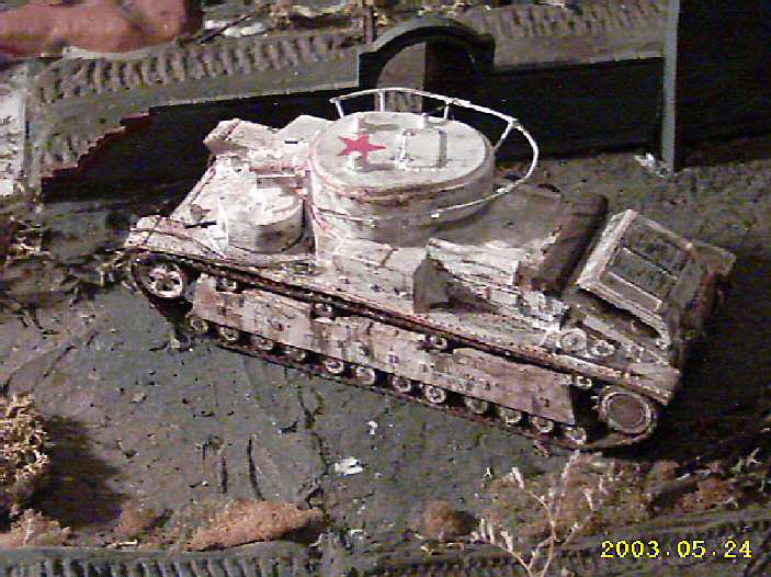 I was browsing through the stock at Dorking Models the other day, and I spotted this 1/72 resin kit of the Russian T-28. Now, I normally stick to 1/76 scale, but I must confess that I have a weakness for the 1930s multi-turretted tanks, so when I saw this one, I just had to buy it,even though the price was high at £21.00. And a very tanky tank it proved to be! The casting was excellent, although, of course I had to remove the usual resin excesses. This was fairly straighforward with a scalpel and a razor saw. The tracks had to be carefully heat formed from flat castings with a hair dryer. I fabricated the machine guns from copper wire, added my own twisted wire hawsers and also fitted a frame antenna around the turret, which I made from tinned copper wire, soldered to the correct pattern.
