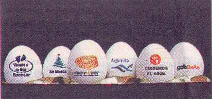 HUEVOS PUBLICITARIOS Octubre 2007 Los huevos de gallina que se venden para comer, pueden llevar mensajes y publicidad impresos en la cáscara.