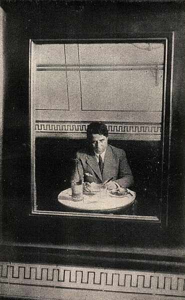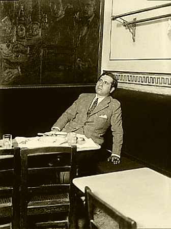Ramón en su rincón del Café de Pombo "Pombo fija mis señas en el mapa, y el destino, que es tímido para subir una escalera, me busca allí varias veces." (Ramón Gómez de la Serna, Pombo.) |