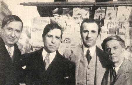 Cami, Ramón, Pitigrilli y Bontempelli, en París hacia 1929 "Comencé a asistir a las comidas mensuales que celebraba la Academia del Humor Francés en los altos de un restaurant del Boulevard. (Ramón Gómez de la Serna, Automoribundia, capítulo LXXI.) |