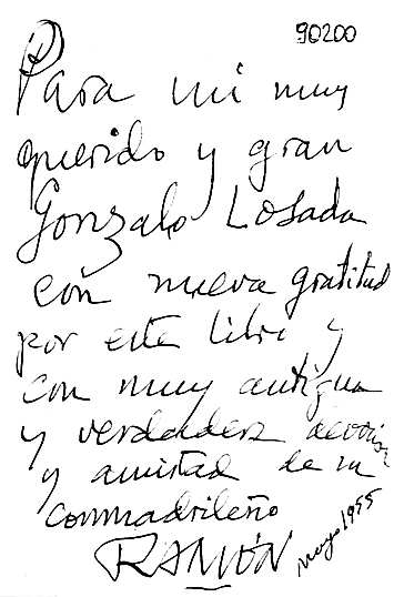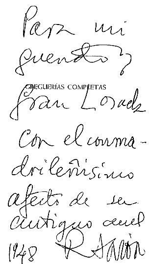 Ramón Gómez de la Serna: "Para mí la dedicatoria es poner un poco de sangre y vida en honor del amigo que cuenta siempre entre los veinticinco o cincuenta excepcionales que merecen libro y dedicatoria de libro." (Ramón Gómez de la Serna, Automoribundia, capítulo LXVII.) |