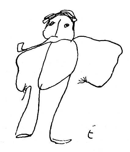 Caricatura de Ramón Gómez de la Serna "Soy corpulento, pero no me he pesado porque creo que sólo los animales deben pesarse. Un niño dijo de mí una vez que era un «gigante pequeño»." |