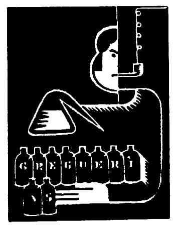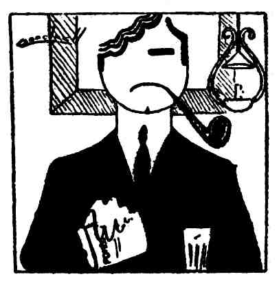 Caricatura de Ramón Gómez de la Serna "La frente en otro intervalo está llena de gravedad, y se la siente hundirse y aligerarse sin hueso alguno, traslúcida y pastosa de algo reblandecido por su antigua atención infiltrada de cosas y de luces..." (Ramón Gómez de la Serna, Automoribundia, capítulo #####.) |
