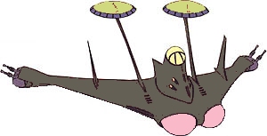| Luggun Unit type: reconnaissance plane Manufacturer: ? Operator(s): Duchy of Zeon First deployed: UC ? Production run: ? units Overall height: 12.4 meters Wingspan: 22.8 meters Full weight: 10.5 metric tons Equipment: radome x 2 Armament: 2-barrel machine gun turret x 2 |