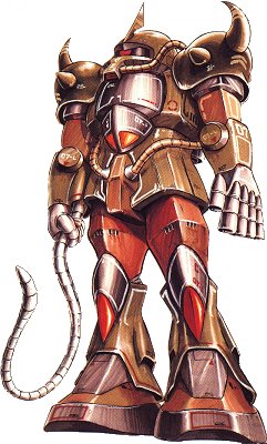 | MS-07B Gouf Unit Type: mass production ground combat mobile suit Manufacturer: Zeonic Company Operator(s): Duchy of Zeon Rollout: UC ? First deployed: UC 0079 Production run: ? units Head height: 18.2 meters Overall height: 18.7 meters Base weight: 58.5 metric tons Full weight: 75.4 metric tons Power generator output: 1034 kilowatts Rocket thrusters: 40,700 kilograms total Maximum thruster acceleration: 0.54 Gees 180-degree turn time: ? seconds Maximum ground running speed: 99 km/h Sensor radius: 3600 meters Frame type: monocoque Armor materials: super hard steel alloy Basic armament: heat rod x 1 5-barrel 75mm machine gun x 1 Mounted or attached armament: shield x 1 - Type BIV heat sword x 1 Hand-carried armament: Type 5 heat hawk ZMP-50D/120mm assault rifle |