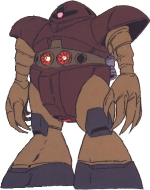 | MSM-03 Gogg Unit type: mass production amphibious mobile suit Manufacturer: Zimmad Company Operator(s): Duchy of Zeon Rollout: UC ? First deployed: UC 0079 Production run: ? units Head height: 18.3 meters Overall height: 18.3 meters Base weight: 82.4 metric tons Full weight: 159.4 metric tons Power generator output: 1740 kilowatts Hydrojet thrusters: 121,000 kilograms total 38,000 kg x 2 15,000 kg x 3 Maximum thruster acceleration: 0.76 Gees 180-degree turn time: ? seconds Maximum water speed: 75 knots Sensor radius: 5400 meters Frame type: monocoque Armor materials: super high tensile steel Equipment and features: retractable arms Basic armament: iron nail x 2 mega particle cannon x 2 torpedo launcher x 2 |