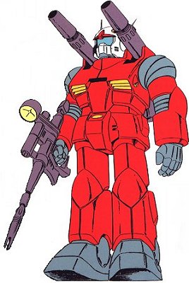 | RX-77-2 Guncannon Unit type: prototype artillery mobile suit Manufacturer: Earth Federal Forces "Project V" Operator(s): Earth Federal Forces Rollout: UC 0079 First deployed: UC 0079 Production run: 6 units Head height: 17.5 meters Overall height: 18.1 meters Base weight: 51.0 metric tons Full weight: 70.0 metric tons Power generator output: 1380 kilowatts Rocket thrusters: 51,800 kilograms total 22,600 kg x 2 1650 kg x 4 Maximum thruster acceleration: 0.74 Gees 180-degree turn time: 2.0 seconds Maximum ground running speed: 78 km/h Sensor radius: 6000 meters Core block system: FF-X7 Core Fighter Frame type: semi-monocoque Armor materials: luna-titanium alloy Basic armament: 60mm vulcan gun x 2 240mm cannon x 2 -or- spray missile launcher x 2 hand grenade x 2 Hand-carried armament: BAUVA*XBR-L beam rifle |
