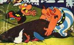 Was ist uns das Leben wert, wenn die SPD regiert, wie das Kapital diktiert in der BRD? Schnell ein neues Notgesetz, Maulkorb, Razzien, Spitzelnetz Alle Linken ins KZ in der BRD. Au, verdammt, verdammt, verdammt, hier in unser'm deutschen Land schwappt die Schei�e �ber'n Rand, das macht die Leute b�s'. (Kehrreim:) Ach, ich w�nschte, eines Tages stark wie Obelix zu sein Und dann schmei�en wir auf's Bundeshaus 'nen dicken Hinkelstein.Nimm den Hinkelstein zur Hand Alle Spitzel aus dem Land, und die Bonzen an das Band* Das w�re doch so sch�n. Dann nimmst Du im Rhein ein Bad Und die M�hle macht klipp-klapp, liefert Strom f�r tausend Watt Das w�re doch so sch�n. Und wir leben in den Tag Sesambr�tchen bicke-back Und im Garten hicke-hack Das macht die Leute froh. Kehrreim Instrumental Kehrreim