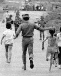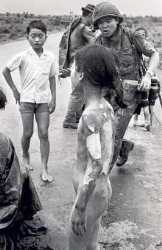 Man beachte vor allem das erste Bild, auf dem die kleine Schauspielerin noch keine getürkten Napalmwunden und -pflaster trägt (die man erst auf dem zweiten Bild anbrachte) und das Haar des kleinen Schauspielers - der übrigens nicht ihr Bruder war - noch adrett gescheitelt ist, mit dem Neger im Hintergrund, der Regieanweisungen für die Probeaufnahmen erteilt. Mein - US-amerikanischer - Informant***** hat noch mehr Bilder vom Set; aber ich will diese Seite nicht überfrachten.