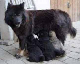 Die Wölfin, die ihr Junges verteidigt und schützt
